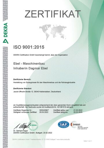 Ebel Maschinenbau ––– Zertifizierungen